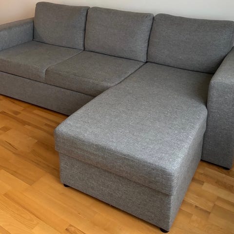 Veldig enkel å gå fra sofa til sovesofa og mye oppbevaring på begge endene.