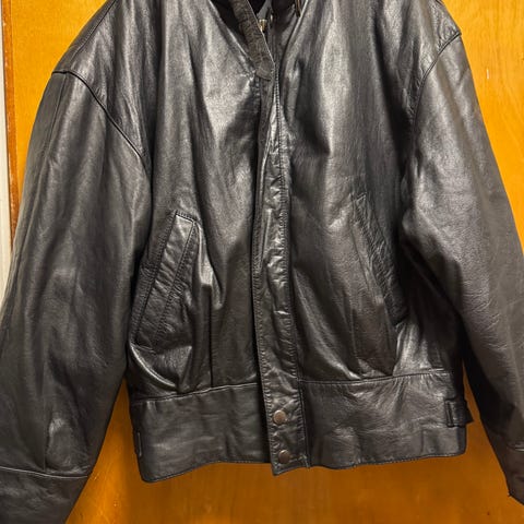 Nydelig lærjakke i semsket skinn fra 90-tallet. brukt men har mye bruk igjen. Ekte lær og pelskrage på hetta.