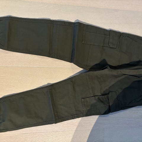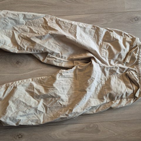 Svarte er str 152 (11-12) og beige er str 140 (9-10). Pent brukt begge to. Svarte buksen er med strikk ved beinet.