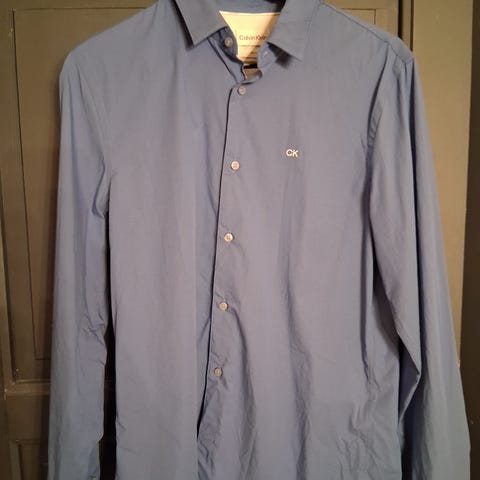 Calvin Klein Occasion skjorte i hvit farge, størrelse 41, laget av bomull. Skjorten har rund halsutringning, kent-krage og knappelukking. Den er ensfarget og meget pen. Den ble for trang til en mann som bruker regular Large. Rakk ikke returfristen.