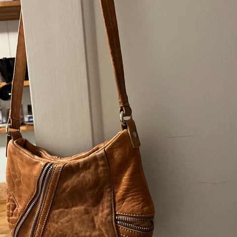 Marc Jacobs dameveske laget i lær. Vesken har en rosa/lilla farge og er utstyrt med en kort hank og en magnetisk lukking. Innvendig er vesken foret med tekstil som har Marc Jacobs-logo. Vesken har også en liten glidelåslomme innvendig.