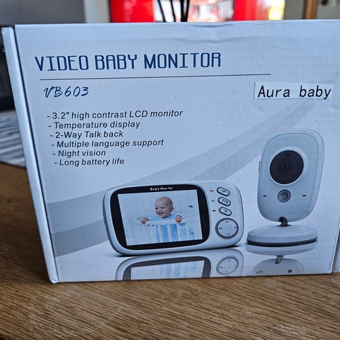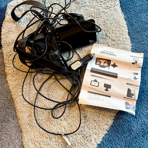 Kamera til til å kunne følge med på baby eller barn i bilen, fungerer veldig bra og så ser man barnet mye bedre enn med speil. Med nightvision / infrarød. Fungerer som den skal men festet til skjermen (for å feste i luftdyse) har blitt borte. Er kuleledd bak skjermen så kan sikkert kjøpes noe som passer på biltema eller lignende.