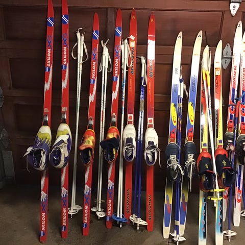 Felle ski med SNS binding 210 cm med fineSko Nr 39 og Leki staver 130 cm. Kr 1000