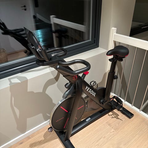 Xiomi Yesoul S3 spinningsykkel. Sykkelen har magnetisk motstand og er derfor meget stillegående ved bruk. Med bluetooth kan sykkelen kobles til nettbrett eller telefon slik at den kan brukes med apper så som Zwift.