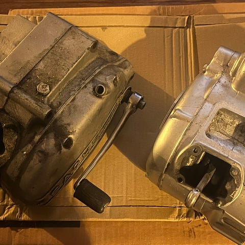 Sachs motor til f.eks Tempo motorsykkel med synlige slitasje og luftkjølt sylinder. Motoren er i brukt tilstand og har ledninger tilkoblet. Passer til gjenbruk eller reparasjon av eldre sykler.