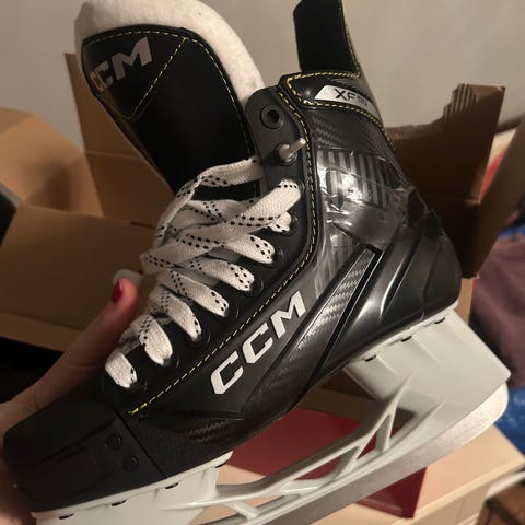 CCM Ishockeyskøyter størrelse 39. Skøytene er designet for ishockey og har svart og gul farge. Egnet for bruk på isflater ved ishockeyspill.