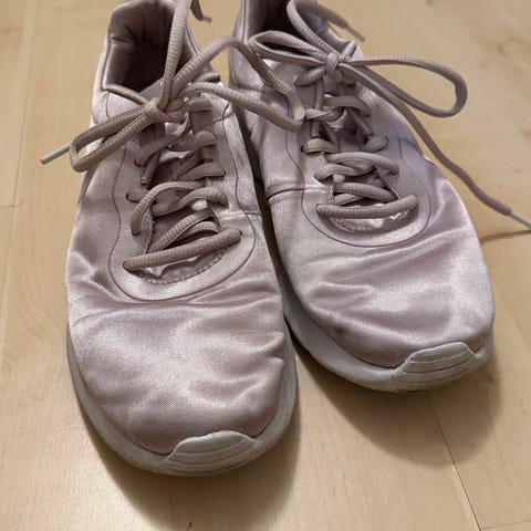 Nike Sneakers joggesko i størrelse 39. Skoene har en kombinasjon av farger inkludert hvit, svart, rosa og beige. Materialet ser ut til å være en blanding av tekstil og syntetisk materiale. Egnet for daglig bruk og lett trening.