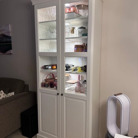 Flott skap med masse plass. 2 hyller i tre, 3 hyller i glass.