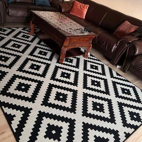 Nyvasket stort og vakkert teppe med elegante detaljer