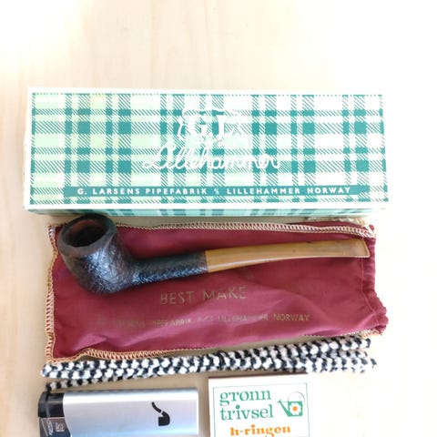 G. Larsen jubile pipe. Pipen er i utmerket stand 15 cm lang. Kr 800 + porto.