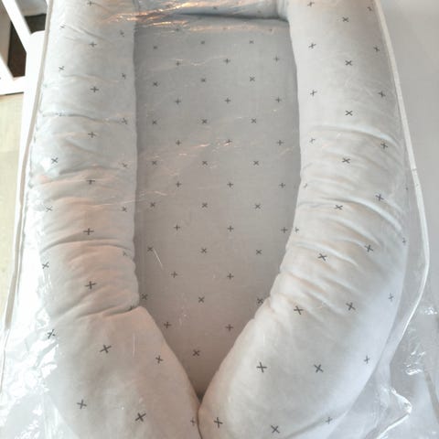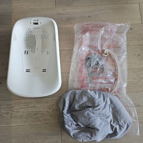 Tripp Trapp Newborn Set babytilbehør i grå farge. Produktet er designet for å gi støtte til nyfødte barn i Tripp Trapp-stolen.