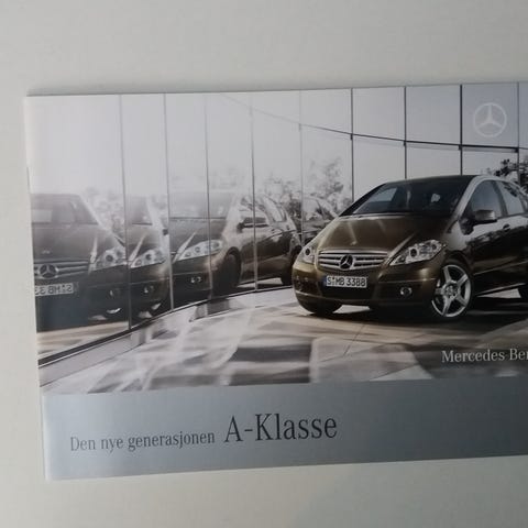 Flott norsk brosjyre over A-Klassen. Modellene A140-A160 og A160 CDI omtales grundig over 52 flotte sider. Ligger i plastlomme i mange år. Fin stand. "Redaksjonen avsluttet 31.12.1997" står det på baksiden.