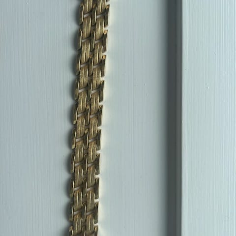 Gullarmbånd 14 karat. Kongemønster. 13 gram. 21 cm langt. 3 mm tykkelse selges 15000kr eller høyst bydende over. Brukt bare 2-3 ganger.