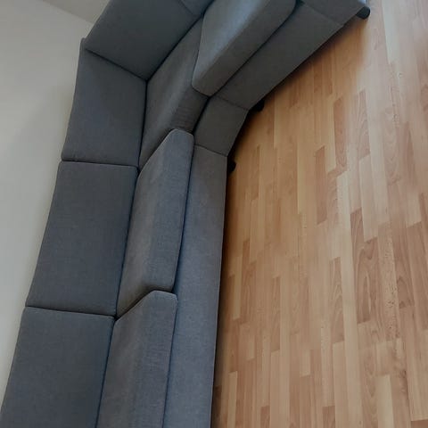 En velholdt sofa, hvor det er plass for hele familie, Sofa har blitt rengjort og er klar for bruk.