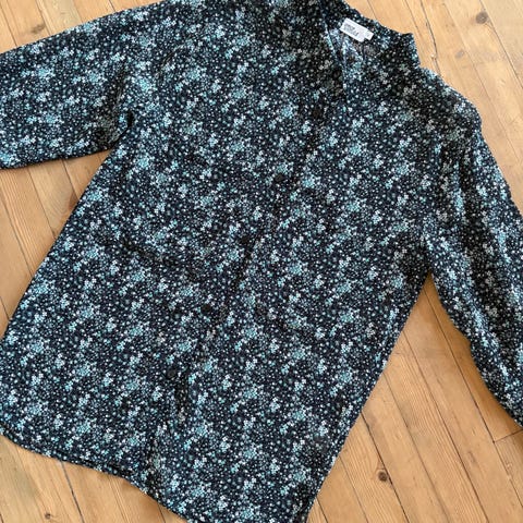 Once Untold skjorte i blå farge, størrelse M, laget av bomull. Skjorten har lang erme og knapper foran, egnet for kvinner. Selges kr 400. Kan sendes mot porto.