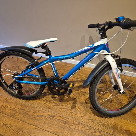 Diamant barnesykkel med 20 tommers hjul, utstyrt med barnesete bak, kurv vil bli tatt av før salg.