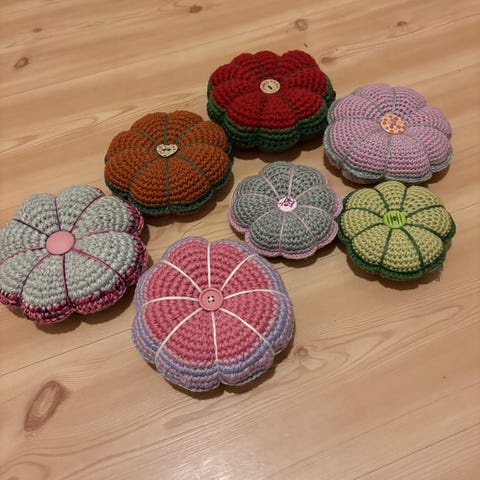 Håndlaget heklet bamse leke i brunt garn. Passer som myk leke eller dekorasjon.