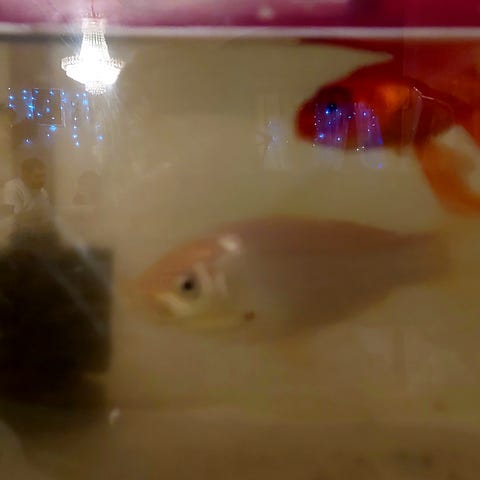 Kjøpte brukt akvarie og denne enslige Scalaren fulgte med.