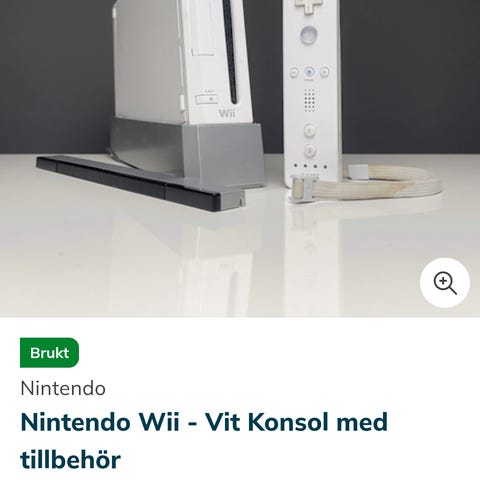 Nintendo Wii spillkonsoll med tilbehør inkludert alt som vist på første bilde (også Mariokart 8 spill). Konsollen har en svart finish som har en del riper, men konsollen fungerer som den skal. Ladekablen til kontrollen er litt slitt som vist på siste bilde, men har ingen problemer med å lade.