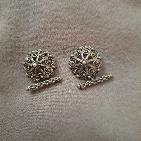 Flotte mansjettknapper i sølv og perlemor - ca 2 cm brede i front. Hele og pene. Stemplet med sølvstempel 835.