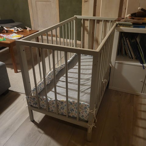 Til salgs, alt er som vist på vedlagte bilder. Alt er i veldig god stand. Sprinkelsengen har justerbar høyde som passer barnets alder. Pris: 500kr for alt.