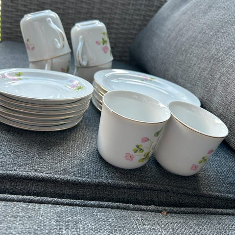 Flotte dessertskåler/tallerkener/ små fat. B 15,5 cm, H 3,5 cm. Noen av de er brukte, men alle er fine og uten skader. 13 stk. er til salgs. Kr. 110,- pr stk. Om de skulle bli solgt samlet vil prisen endres. Ev sending, antall vil da være avgjørende hva størrelse på pakke.
