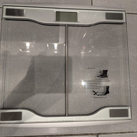 Fullt fungerende vekt fra IKEA. Max kapasitet 150 kg. Viser intervaller på 100 gram. Kan enkelt endre måleenhet mellom kg/lb/st. Bruker 2 stk AAA batterier.