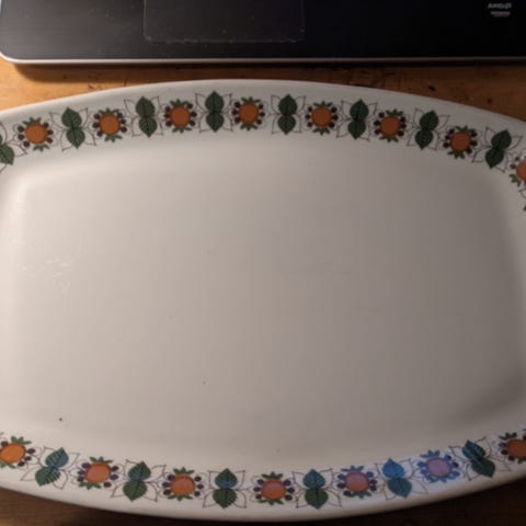 Eldre serveringsfat, men ser helt nytt og ubrukt ut.