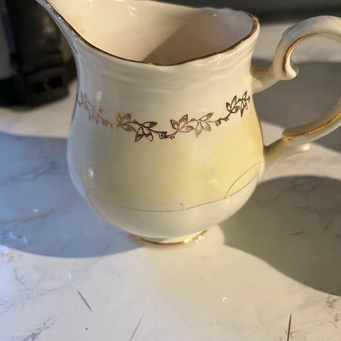 Brukt mugge fra Stavanger flint med blå dekor.