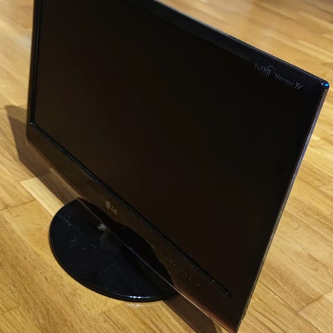 Pent brukt skjerm med nettadapter og HDMI kabel.