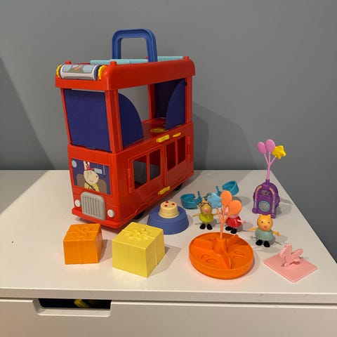 Peppa Gris Lekehus med tilbehør som møbler og figurer.