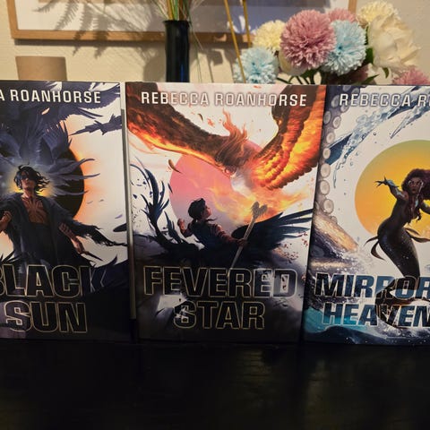 Alle fire bøkene i Skyward serien til Brandon Sanderson. Innbundet, på engelsk, aldri lest.