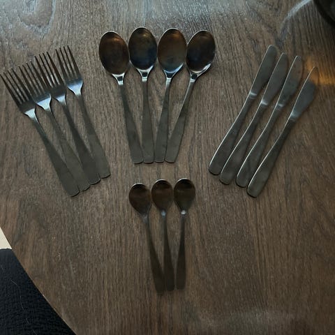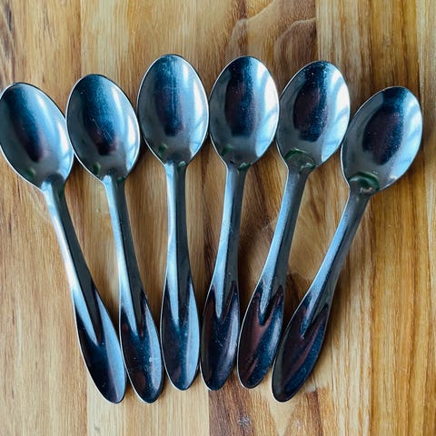 9 stk vintage teskjeer som jeg mener er designet av Hermann Bongard for Polaris fabrikker.