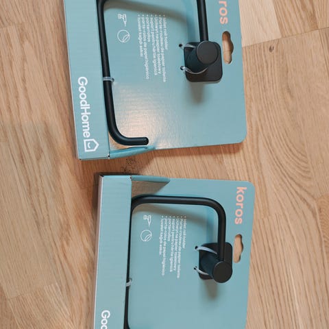 Innfelt sort toalettrull holder i metall. Ny i eske.