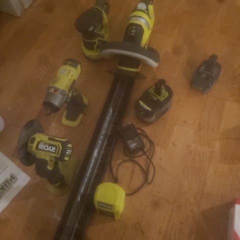 Ryobi verktøypakke selges. Stikksag, bajonettsag, skrumaskin, eksentersliper og fugepistol.