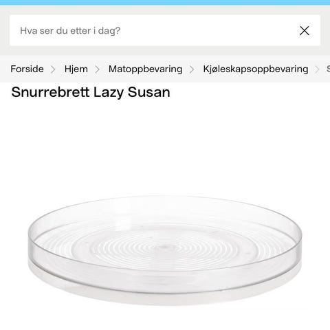 Snurrebrett i plast fra Clas Ohlson også kalt Lazy Susan. 29.6cm i diameter, lav kant.