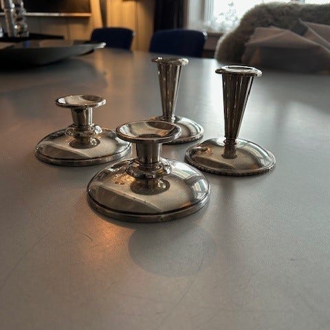 2 armet lysestake i sølv fra Brødrene Lohne
