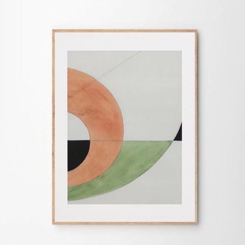 To kunsttrykk med forskjellige motiver; ett med et fargerikt tigerhode på rosa bakgrunn, og ett med en svart-hvitt detaljert hånd. Begge trykkene er innrammet i svarte rammer.