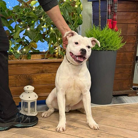 Vi er en familie på fire som gjerne ønsker å kjøpe oss en staff til. Vi har allerede en hannhund, så vi ønsker tispe 😊 Ønsker en venn til han ☺️ Han er to år og verdens snilleste gutt ❤️