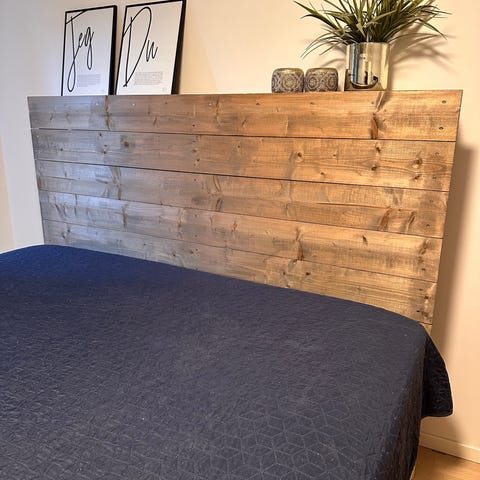 Den ene kortenden har skruehull etter en bord/hylle-plate som var montert fast i sengen (se bilde 4 og 5), men disse er ikke synlige dersom sengen står inntil en vegg. Noe slitasje på skuffene (se bilde 7 og 8). Bunnplatene i skuffene er tykke og solide, og bunnplaten med misfarging tåler fortsatt godt med vekt.