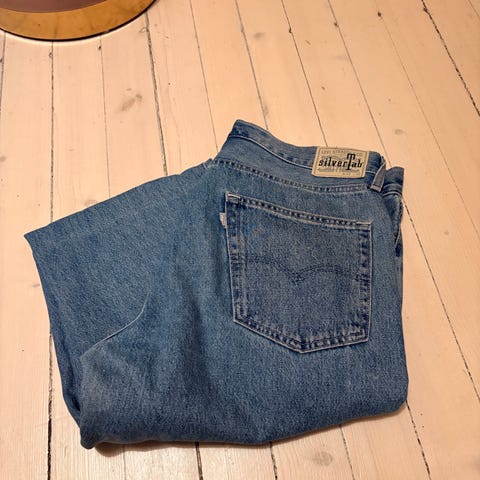 Levi's Denim bukser i blå farge, herrestørrelse L med midjemål W32. Laget av denim materiale.