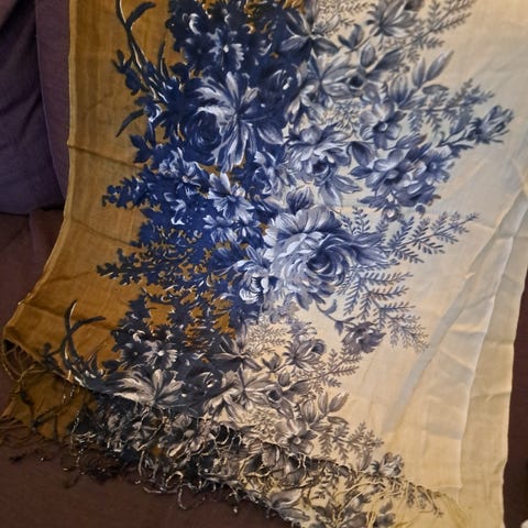 2-sidig skjerf med klassisk og tidløst mønster. Det har aldri vært i bruk og fremstår som nytt. Skjerfet er mykt og varmt.