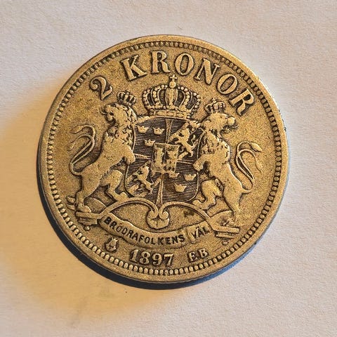 2 kronor Sverige 1890, *80 % Sølv*, Meget lavt opplag
