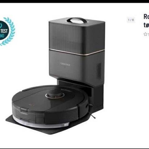 Roborock 5S Max som både støvsuger og mopper selges. Følger med ekstradeler.