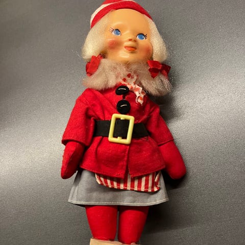 Håndmalt dukke med bevegelige ledd.