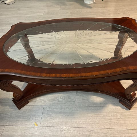 Dette er et klassisk møbel som passer perfekt som sidebord ved sofaen, lampebord eller til dekor og servering. Bordene er i god stand, med kun lette bruksspor som understreker alderen. Litt slitt på overflaten av det største bordet.
