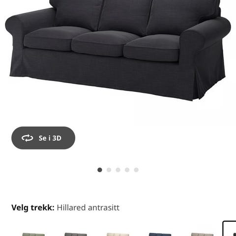 Selger en sofagruppe med to ektorp-sofaer og en puff. Sofaene er en toseter og en treseter. Selger også stuebordet. Vil helst selge hele gruppen samlet.