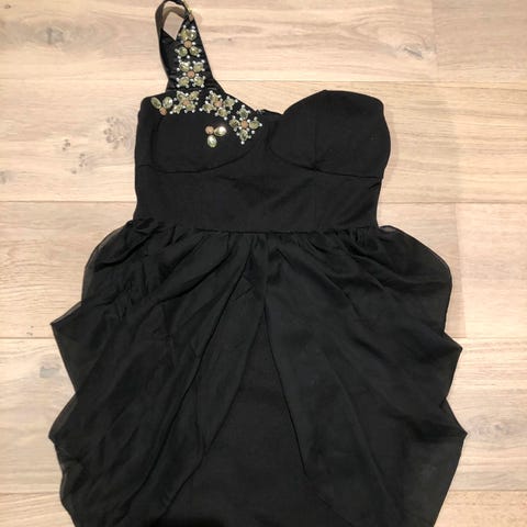 Fin fasong, kort kjole! Tettsittende! Mørk blå