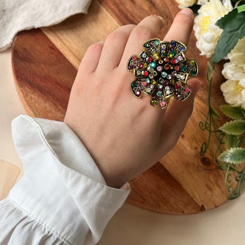 Søkeord: ovalt oval rund smykker smykke vintage retro juggel boho metall stein steiner sten fargerik brun brunt oransje brunfarget sølvfarget bijouteri stil style mote fashion 2000 tallet Y2k gave sølvfarge gaver gavetips gaveide presang til henne ideer gaveideer statement bursdagsgave detaljer retro blomster bohemsk