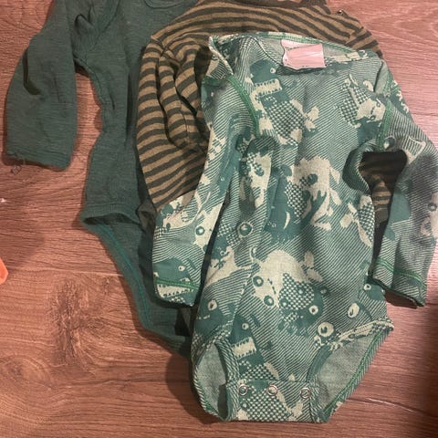 Stor klespakke med barneklær i størrelse 74–80.